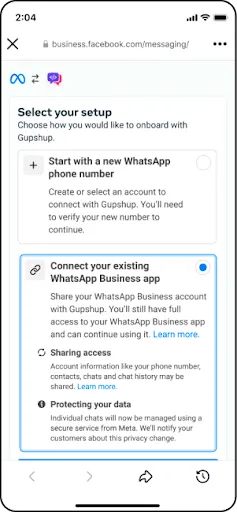 Con WAXIVO puedes configurar el Registro Integrado para usar tu cuenta y número de teléfono de WhatsApp Business. Los clientes que se incorporen correctamente con esta opción podrán enviar mensajes a gran escala usando la API oficial, pero también podrán seguir enviando mensajes individuales desde la app de WhatsApp Business, manteniendo sincronizado el historial entre ambas plataformas.