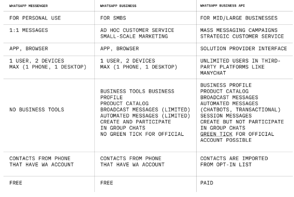 - WhatsApp Messenger : la aplicación personal que puedes descargar en la tienda de aplicaciones, utilizada principalmente para comunicarte con familiares y amigos.